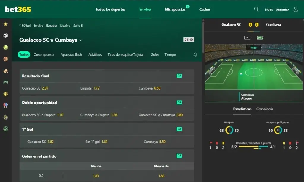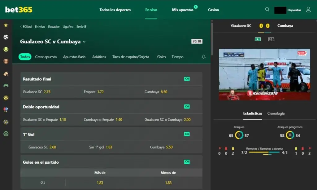 Imagen: Vista 1 streaming en vivo deportes Bet365